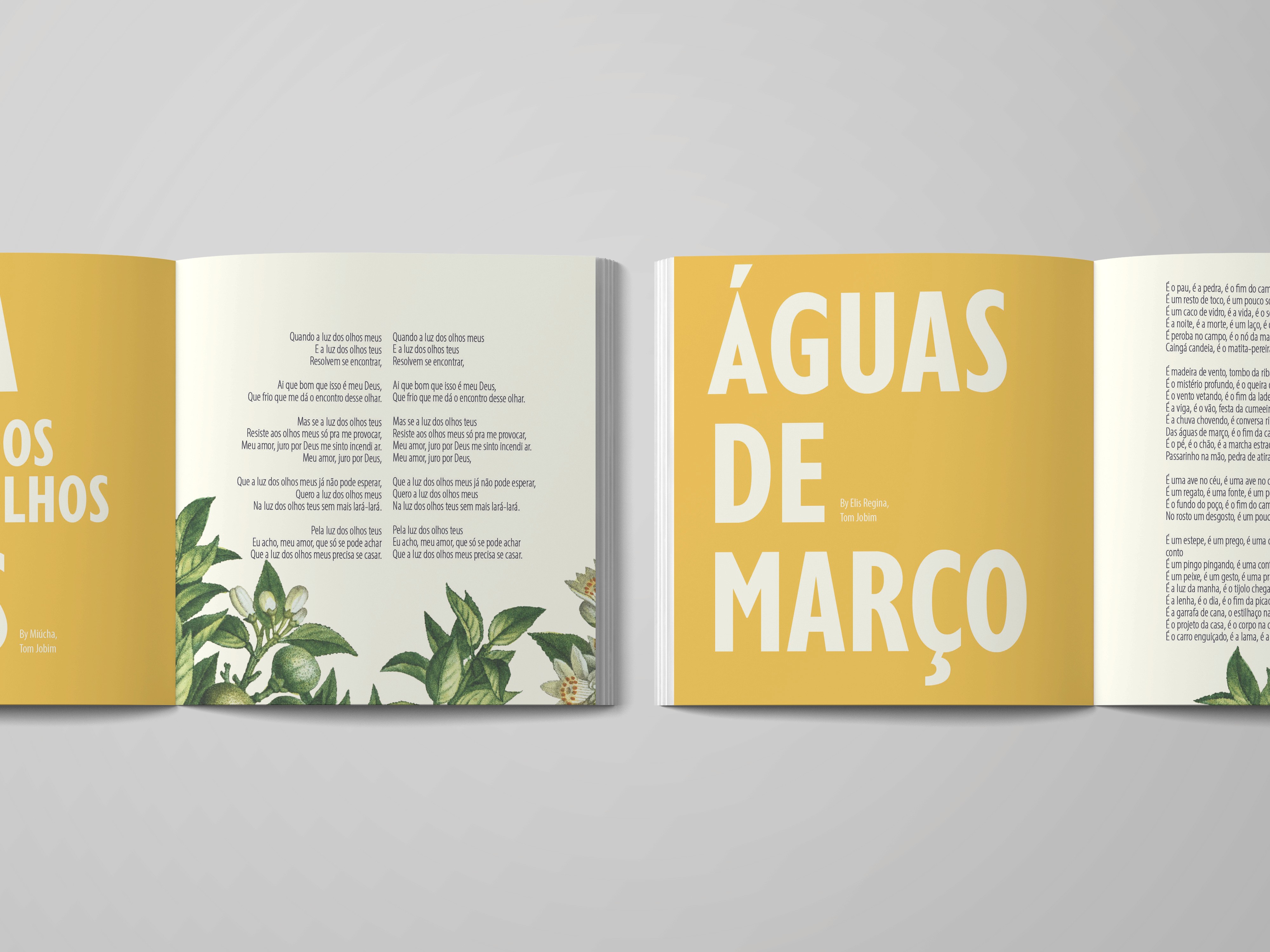 This project explores the visual identity of a music album inspired by Brazilian culture and the atmosphere of Bossa Nova movement. The goal was to design a cohesive album experience that includes the CD cover, disc design, and a booklet featuring the song lyrics.