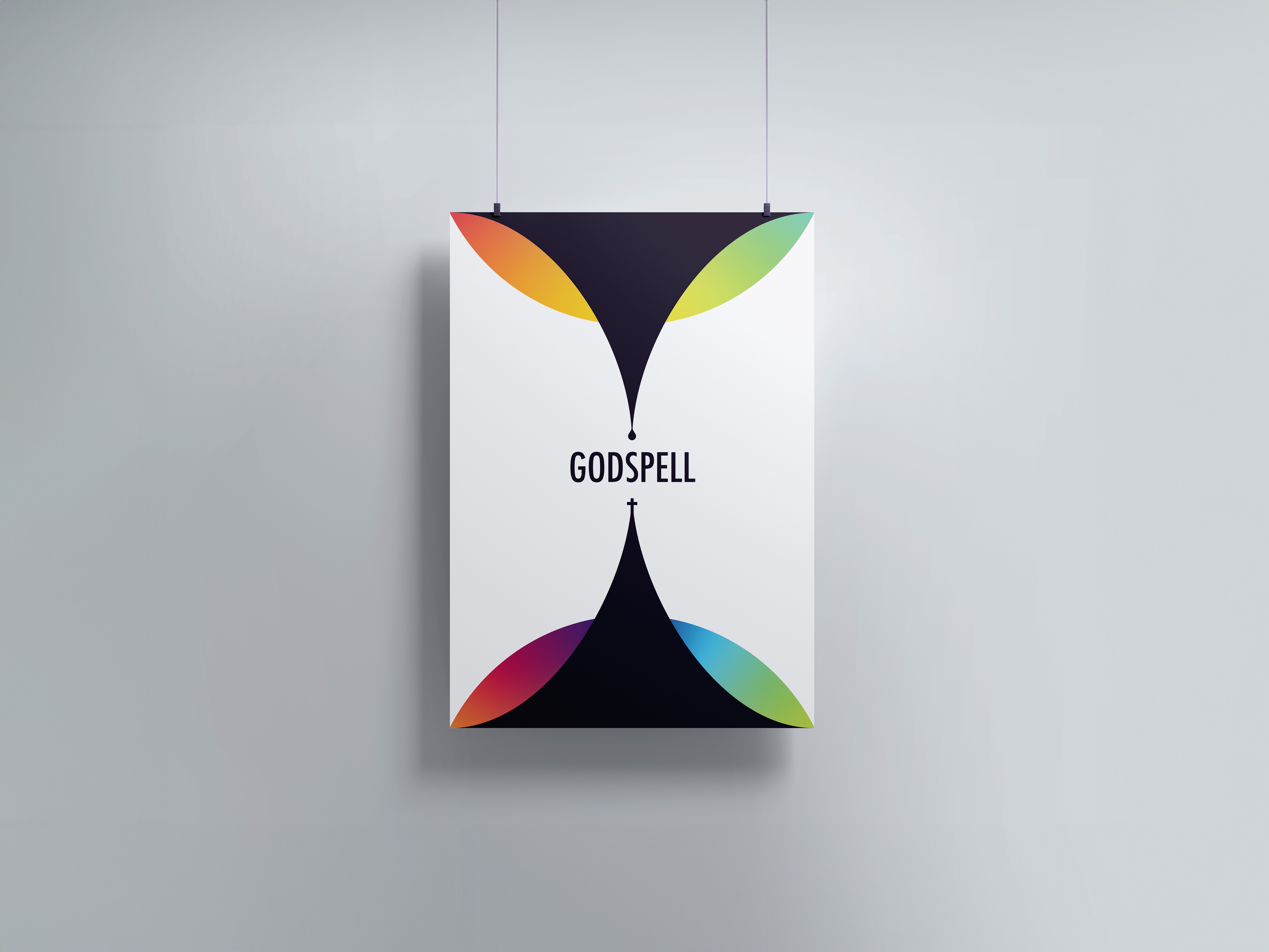 At the same time, symbolic elements were incorporated to reflect the Christian narrative of the play. The drop shape represents Christ’s sacrifice, while the cross symbolizes His crucifixion. The use of black and white also carries meaning, representing the idea of redemption and the cleansing of sin through His sacrifice.