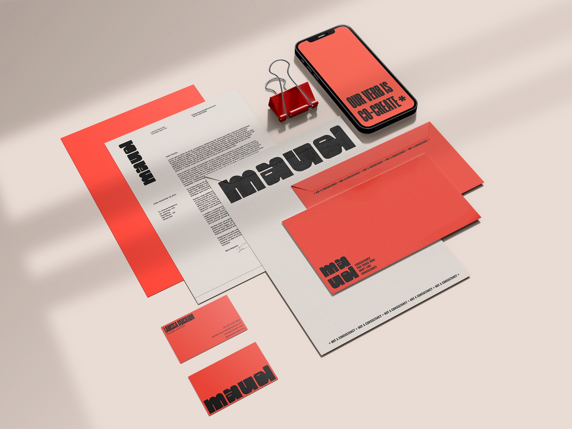 The concept behind Maud is built on boldness, disruption, and confidence. Rather than adopting a safe or conventional corporate aesthetic, the brand embraces a rebellious and expressive visual language that reflects the energy of creative professionals.